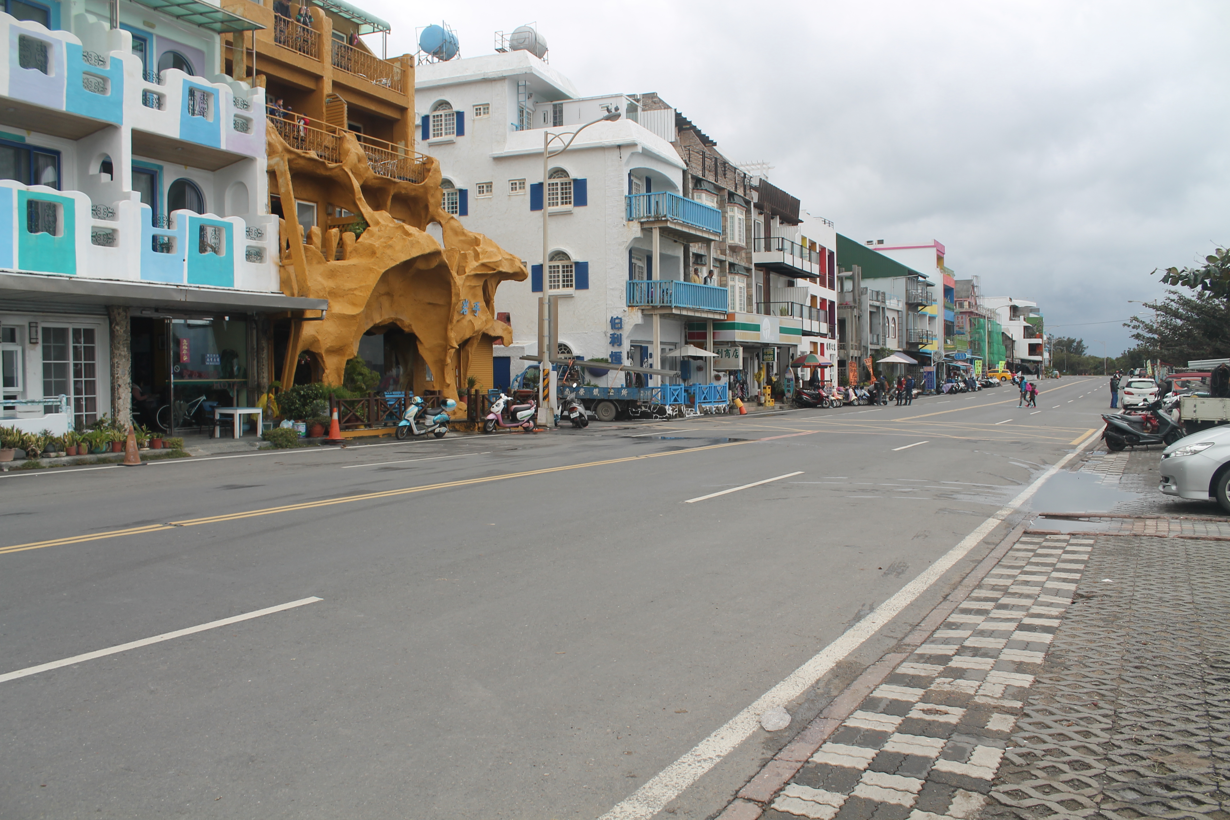 After 25 km we stopped in at Hengchun to visit the Giant shop and grab some breakfast. The Giant shop staff were really helpful. The sold us the inner tubes we needed and showed us how to pump up the tires to the right pressure. I grabbed a couple of double sausage McMuffins to fuel myself for the rest of the day’s journey. The old rule for unltra-marathon running tells us to eat even when you aren’t hungry and drink even when you’re not thirsty. I reckoned that the same rule should apply for long distance cycling and wolfed down my second burger with a vengeance. Nothing wrong with a bit of gluttony when you know you’re going to need the calories later on. We took the property to fill our water bottles with some hot water and were off on the road again.